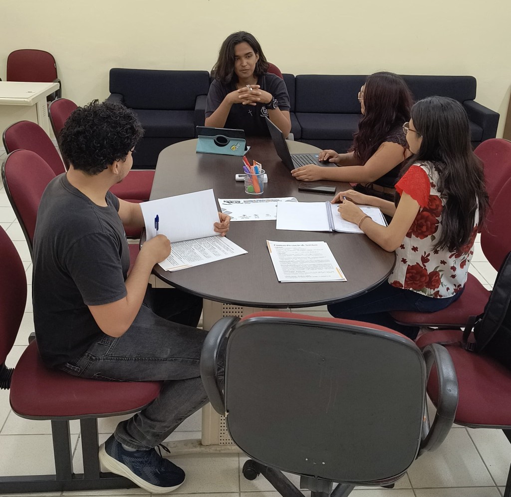 Ou seja, administrar muito bem nosso tempo, fazer gestão de tempo. Quando temos uma demanda, e se formos falar com o professor que temos que fazer a atividade da EJ, nem todos vão entender; se eu falar pra minha mãe: deixa eu terminar aqui essa tarefa ou essa reunião, nem todo o parente entende, nem todo familiar entende. Então, a gente tem que saber administrar bastante nosso tempo e não esquecer do estudo, porque não adianta – a gente sempre prioriza aqui na equipe – se doar muito pela EJ e esquecer do nosso curso, das matérias, da nossa grade, a prioridade sempre será as nossas aulas, nossas matérias, depois as atividades da EJ.