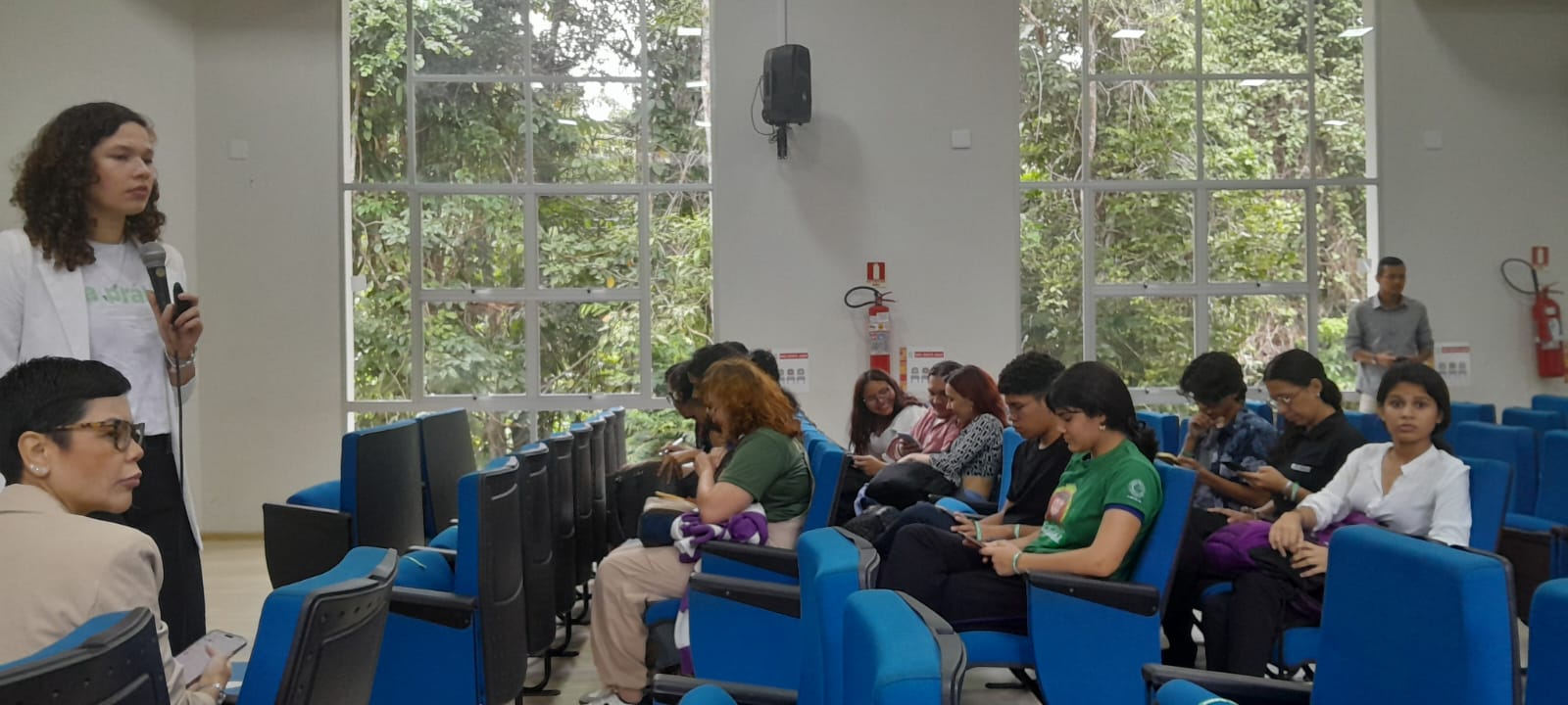 Servidores da UFAM estiveram presente para apoiar e ajudar na organização da atividades. Uma parceria entre PROTEC, SISTEBIB e Baré Júnior, facilitou a vinda desta ação para a Universidade.
